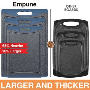 - ?Tábuas de corte de alta densidade?Cada uma das tábuas de corte Empune é feita de plástico de alta densidade, com super durabilidade. A superfície da tábua de corte é resistente o suficiente para suportar cortes pesados, cortes e cortes. Não deixa manchas, pode ser utilizado por um longo tempo.