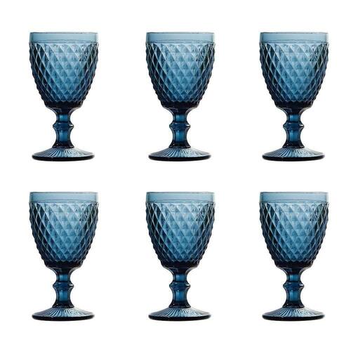 Conjunto de Taças de Vidro para Água 6 Peças 325 ml Bico de Abacaxi Azul Lyor - Incluso06 Taças de Vidro para Água - 17,5 cm de altura com 325 ml