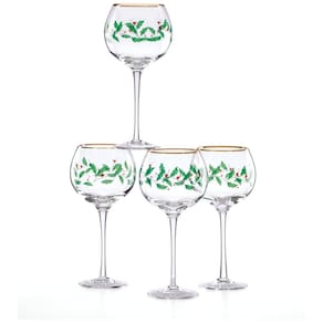 Este conjunto de taças de vinho é ideal para qualquer ocasião, desde uma noite descontraída com a família e amigos até uma festa luxuosa e sofisticada. Com detalhes em dourado e um delicado motivo festivo de folhas de azevinho, as taças são uma adição elegante à sua coleção de utensílios domésticos.