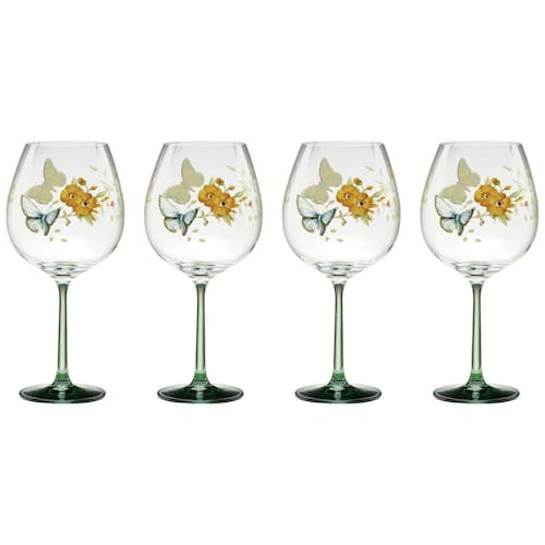 As taças de vinho de balão Butterfly Meadow apresentam um design exclusivo e encantador, com borboletas e abelhas animadas sobre uma folhagem vibrante. As flores elegantes completam o visual, transformando qualquer evento em uma verdadeira festa no jardim. Feitas de vidro cristal, essas taças são laváveis na máquina de lavar louça e vêm em um conjunto de 4. Cada taça mede 7 cm de diâmetro por 24 cm de altura. Este produto é importado e traz um toque especial para suas celebrações!