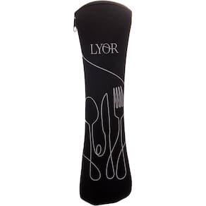 Composto por garfo, faca e colher confeccionados em aço inoxidável de alta qualidade, o kit oferece durabilidade e um design moderno, e vem acondicionado em um estojo protetor de neoprene na cor preta, que facilita o transporte e mantém os talheres limpos e organizados.