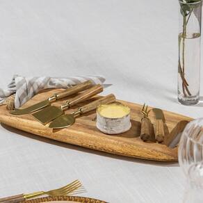 Conjunto De Talheres Copa E Cia Para Aperitivo Finger Food 4 Peças Garbo Goldwood Conjunto de Talheres Copa e Cia para Aperitivo Finger Food 4 Peças Garbo Goldwood - Características Gerais do Produto: - Composição: Composição por linha de talheres:; Rattan: em aço inoxidável gold com cabo de rattan natural.; Atenas: em aço inoxidável gold com cabo de madrepérola.; Monza: em aço inoxidável silver com cabo de resina.; Goldwood: em aço inoxidável gold com cabo de madeira.; Turim: em aço inoxidável gold com cabo de resina.; Ilhéus: em aço inoxidável com cabo de resina.; Bamboo Natural: em aço inoxidável disponível nas versões gold ou silver, com cabo de bambu natural.; Rattan Natural: em aço inoxidável silver com cabo de rattan. - Detalhes: Design Exclusivo Copa&Cia.; Produzido na Índia.; As cores podem sofrer pequenas alterações de cor, variando de monitor para monitor.; Os objetos que ambientam as fotos não acompanham o produto.; As fotos produzidas são apenas como sugestão de uso com as demais peças da coleção. - Cuidados: Não Armazenar as Peças Todas Juntas, Poderá Provocar Riscos.; Lavar com Detergente Neutro e Esponja Macia.; Não Deixar de Molho.; Secar Bem e Armazenar em Local Seco e Arejado.; Lavar Manualmente; Não podem ser colocados em lava-louças.; Não utilizar solventes, abrasivos ou alvejantes. - Dimensões (cm): Dimensão da Embalagem: Altura: 3 cm, Largura: 14 cm, Comprimento : 17,5 cm Acompanha o produto: - 4 Peças de Garfos para Aperitivo Garantia: - 7 dias/30 dias contra defeito de fabricação