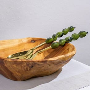 Conjunto De Talheres Copa E Cia Para Salada 2 Peças Garbo Oliva Conjunto de Talheres Copa e Cia para Salada 2 Peças Garbo Oliva - Características Gerais do Produto: - Composição: Composição por linha de talheres:; Rattan: em aço inoxidável gold com cabo de rattan natural.; Atenas: em aço inoxidável gold com cabo de madrepérola.; Monza: em aço inoxidável silver com cabo de resina.; Goldwood: em aço inoxidável gold com cabo de madeira.; Turim: em aço inoxidável gold com cabo de resina.; Ilhéus: em aço inoxidável com cabo de resina.; Bamboo: em aço inoxidável silver com cabo de bambu natural escuro.; Rattan Natural: em aço inoxidável silver com cabo de rattan.; Luma Silver: em aço inoxidável silver com cabo de acrílico.; Stone Slim: em aço inoxidável gold com cabo em resina.; Opal Wood: em aço inoxidável gold com cabo de madeira e resina.; Cristal Silver: em aço inoxidável silver com cabo de acrílico.; Calacatta Gold: em aço inoxidável gold com cabo em resina.; Oliva: em aço inoxidável com cabo de alumínio com cobertura de enamel.; Siciliano: em aço inoxidável com cabo de alumínio com cobertura de enamel. - Detalhes: Design Exclusivo Copa&Cia.; Produzido na Índia.; As cores podem sofrer pequenas alterações de cor, variando de monitor para monitor.; Os objetos que ambientam as fotos não acompanham o produto.; As fotos produzidas são apenas como sugestão de uso com as demais peças da coleção. - Cuidados: Não Armazenar as Peças Todas Juntas, Poderá Provocar Riscos.; Lavar com Detergente Neutro e Esponja Macia.; Não Deixar de Molho.; Lavar Manualmente; Não podem ser colocados em lava-louças.; Não utilizar solventes, abrasivos ou alvejantes. - Dimensões (cm): Dimensão da Embalagem: Altura:4 cm, Largura: 16 cm, Comprimento: 33 cm Acompanha o produto: - 1 Peças de Colher para Servir Salada1 Peça de Garfo para Servir Salada Garantia: - 7 dias/30 dias contra defeito de fabricação