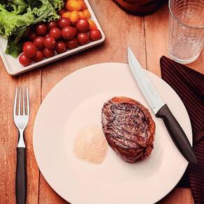 Esse conjunto de talheres é ideal na hora de reunir os amigos e a família para apreciar um assado especial, seja para uma comemoração ou um almoço de domingo. Fabricadas com a mais alta tecnologia, os talheres para churrasco vêm em caixa litografada com visor, que permite visualizar os utensílios da hora de pegá-los no armário. O conjunto de talheres é composto por 6 garfos e 6 facas com estrutura temperadas e em aço inoxidável polido, que combinam tecnologia e qualidade, tudo isso com o cabo em aço inoxidável e abs (polímero especial) sobreinjetado na cor preto, fixados com rebites também em aço inoxidável, garantindo ainda mais segurança durante o uso dos utensílios.