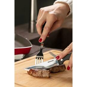 O Conjunto de Talheres Jumbo da Brinox foi especialmente desenvolvido para quem ama churrasco. Com 12 peças, incluindo 6 garfos e 6 facas com lâminas afiadas, ele oferece a praticidade e o corte preciso necessários para carnes e refeições mais robustas.