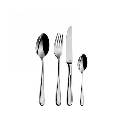 A linha de talheres em aço inox 18/10 da linha Futura da Bugatti apresenta linhas limpas e suaves para decorar sua mesa com graça e elegância.