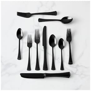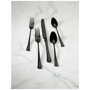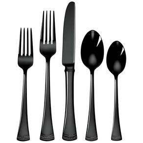 Apresentamos o conjunto de talheres Portola na elegante cor preta com acabamento espelhado, que preserva o design clássico que você já conhece e adora. Cada peça possui alças largas e um delicado canal com contas na base. O conjunto inclui garfos, garfos de salada, facas, colheres e colheres de chá, perfeito para servir até quatro pessoas.