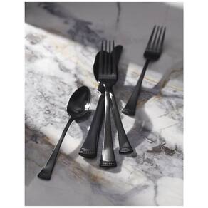 Apresentamos o conjunto de talheres Portola em sua elegante versão clássica na cor preta, com acabamento acetinado. Este conjunto completo, projetado para servir quatro pessoas, conta com alças alargadas e um delicado canal com contas na base, garantindo um toque sofisticado à sua mesa. Fabricado pela Lenox, uma marca com mais de 130 anos de história e tradição em artesanato, cada peça reflete um compromisso centenário com qualidade, arte e beleza. O conjunto é feito de aço inoxidável 1810, que assegura durabilidade e resistência.