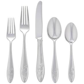 Este conjunto de talheres casual e elegante Butterfly Meadow da Lenox, com 65 peças, é feito de aço inoxidável 1810 durável e apresenta o encantador motivo de borboletas e flores, característico da coleção.