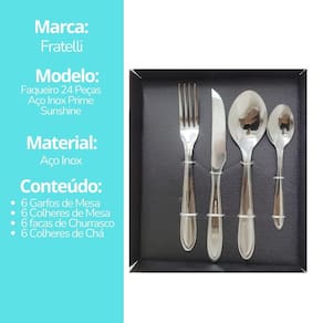 O Conjunto de Talheres Sunshine Fratelli em Aço Inox com 24 Peças é a escolha ideal para quem busca qualidade, elegância e durabilidade no dia a dia ou em ocasiões especiais.