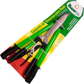 Conjunto de Tesouras para Poda TS-27002 - 3 peças - TrappInformações do produtoEste conjunto de tesouras Trapp é muito versátil e útil para auxiliar o cultivo do seu jardim. Composto de três tesouras para poda. Sendo: 1 Tesoura para grama e cercas vivas, 1 Tesoura para poda de galhos 1 Tesoura para jardim. Cuide de seu jardim com as ferramentas práticas, modernas e seguras da Trapp.Ficha técnicaCódigo: 7258736Código de barras: 7896260216229Marca: TrappRecursos Conjunto versátil e prático para o cultivo de seu jardimFuncionalidade São 3 peças para a manutenção de sua grama, cerca viva, poda de galhos e jardimSuperfícies recomendadas Ideal para podas de galhos em árvores, gramados e cercas vivaConteúdo da Embalagem: 1 Tesoura para grama e cercas vivas, 1 Tesoura para poda de galhos1 Tesoura para jardimDimensões aproximadas da embalagem (cm) - Axlxp5x63x28,5cmPeso aproximado da embalagem do produto (kg)1,780gGarantia do Fornecedor 3 mesesModelo: TS-27002Referência do ModeloTS-27002Fornecedor: Trapp