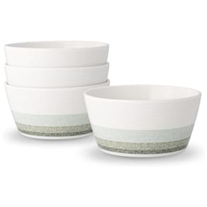 Inclui: conjunto de 4 tigelas Colorscapes Layers Sage para sopa ou cereal, com 15 cm de diâmetro e capacidade de 740 ml, em verde e branco.