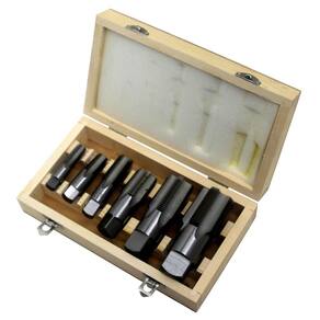 IMPORTANTE: Se for um produto elétrico, ele pode ser compatível com uma tomada de 110 volts. Se utilizado fora dos Estados Unidos, pode ser necessário um conversor de voltagem para garantir a operação adequada. Verifique se o produto que você está comprando é elétrico antes de considerar essas informações. Conjunto de torneiras de tubo NPT Drill America DWTPT1/4-1-1/4SET de 6 peças em caixa de madeira (1/4 “, 3/8 “, 1/2 “, 3/4 “, 1" e 1-1/4 “), aço carbono, série DWT, sem revestimento (brilhante), pequeno