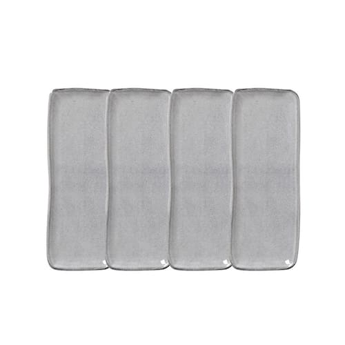 Funcionalidade e Estilo Composto por quatro travessas médias retangulares, este conjunto oferece funcionalidade sem abrir mão do estilo. Cada peça possui dimensões de 33 cm de comprimento, 13 cm de largura e 1,8 cm de altura, sendo ideal para servir diferentes pratos com praticidade e elegância, seja no dia a dia ou em eventos especiais.