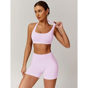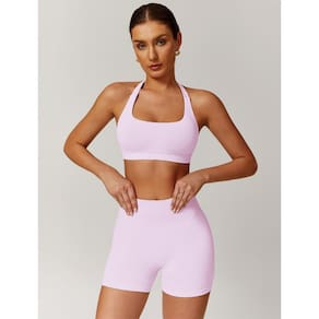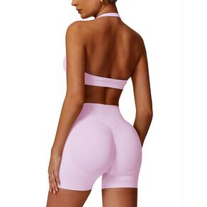 ? ? Conjuntos de treino femininos de 2 peças Seamless Scrunch Scrunch Butt Lifting Booty Gym Shorts, sutiã esportivo Halter, combinando um conjunto de duas peças ? ?