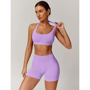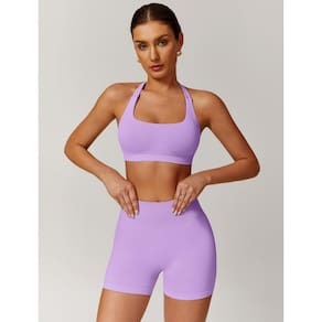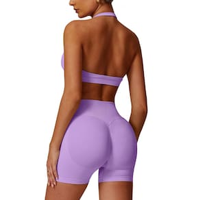 ? ? Conjuntos de treino femininos de 2 peças Seamless Scrunch Scrunch Butt Lifting Booty Gym Shorts, sutiã esportivo Halter, combinando um conjunto de duas peças ? ?