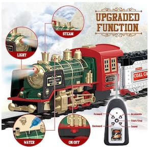 Conjunto de trem de Natal retrô Choo Choo Choo ... O brinquedo de trem a vapor clássico retrô Mini Tudou está chegando Uma locomotiva a vapor clássica com o carro de carvão, o carro de passageiros e o veículo de carga está dirigindo ao redor da árvore de Natal. Como um dos brinquedos mais amados de várias gerações, o pai contará a história do trem clássico e trará as crianças de volta à Era do Vapor para aprender mais conhecimento com diversão sem fim. Conjunto de trem elétrico com controle remoto Compare com outros brinquedos de trem eletrônico, nosso conjunto de trem rc não inclui apenas motores de locomotiva, vagões de carvão, vagão de passageiros, vagão de carga, trilhos retos, trilhos curvos, sinais de trânsito, árvores, garrafa de água vazia, mas também equipar com controle remoto, baterias recarregáveis e cabos USB. As crianças podem controlar o trem para parar, avançar, acelerar ou retroceder. Além disso, ele pode ligar e desligar o som através do controle remoto quando estiver em execução. Experiência Imersiva Perfeita A grande atenção aos detalhes, desde a chaminé até as rodas deste modelo de trem, nossos designers estão comprometidos em restaurar a aparência mais clássica do trem. As crianças podem encher a entrada de água com a garrafa de água e ativa, então nosso conjunto de trem elétrico apresenta fumaça inodora, faróis piscando e sons de trem realistas para melhorar a experiência imersiva. Não como outros produzem cheiro odorífero com óleo, os pais garantem que seus filhos brinquem Marca: Não Informado