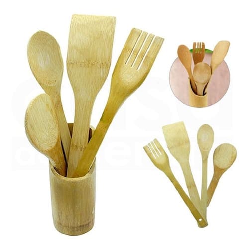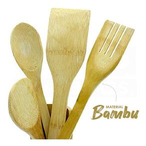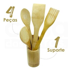 Distribuído por: casa das serrasbr / br / Características:br / - conjunto de utensílios com suporte é feito em bambu de ótima qualidade, resistente, flexível e leve. Não absorvente, inodoro, sem sabor, sem substância tóxica e naturalmente antibacteriano. Suas fibras não possuem poros, não havendo acúmulo de resíduosbr / - a aparência tem estilo rústico contemporâneo, inspirado em espaços rurais, com elementos e formas da natureza, mas sempre acompanhado de um design moderno. Apresenta simplicidade. A cor natural torna as peças atraentes em qualquer ambiente.br / br / Limpeza:br / - lavar com detergente neutro, esponja macia e secar imediatamente. Não lavar em máquinas, não utilizar nenhum tipo de produto químico.br / br / Especificações:br / Dimensões das peças:br / Suporte dxa : 7 x 16,5 cmbr / Colher pequena cxaxl : 20,4 x 0,8 x 6,4 cmbr / Colher grande cxaxl : 27,5 x 0,7 x 4,5 cmbr / Espátula cxaxl : 29,2 x 0,8 x 6 cmbr / Garfo cxaxl : 28 x 0,6 x 4,6 cmbr / Dimensões da embalagem dxa : 7 x 30 cmbr / br / Conteúdo da embalagem:br / Suportebr / Colher pequenabr / Colher grandebr / Espátulabr / Garfobr / Conjunto de utensílios bambu 4 peças c/suporte ub-05 westernbr / br / Imagens meramente ilustrativas Ean: 7896980431810