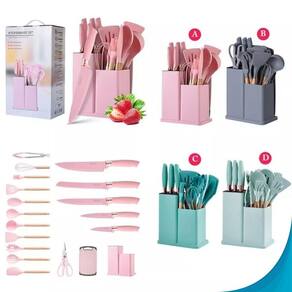 Facas e utensílios de alta qualidade, feitos para durar Utensílios de silicone resistentes ao calor e fáceis de limpar Tábua de corte de madeira robusta e durável Design ergonômico para manuseio confortável Diversas opções de cores para combinar com sua cozinha Ideal para cortes precisos e cozinhar com eficiência