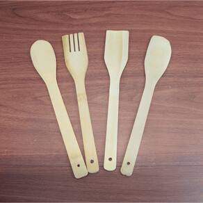 Produzidos em bambu natural, os utensílios são resistentes, leves e não danificam panelas com revestimentos antiaderentes.