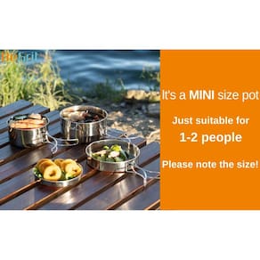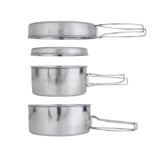Possui 4 peças/conjunto adequado para 1-2 pessoas O aço inoxidável 410 é mais saudável do que utensílios de cozinha para acampamento e mochilão. Alça móvel e dobrável, baixa temperatura facilita a tomada Equipado com uma bolsa, fácil de transportar Ótimo para acampamento, caminhadas, mochilão, piquenique e outras atividades ao ar livre Bom utensílio de cozinha com acabamento polido, alta capacidade e seguro. O conjunto de panelas de acampamento BeGrit é uma ótima opção de presente de Natal para amantes de acampamento ao ar livre, mochilão e caminhadas! - ?Leve e pequeno?O conjunto de panelas de acampamento pesa 0,56 kg. Design de alça dobrável e tamanho compacto, fácil de levar e economizar espaço - ?Feito para durar e fácil de limpar?A panela de acampamento BeGrit aquece rapidamente e é um equipamento de sobrevivência feito para durar. Material de aço inoxidável 410, torna fácil de limpar e mais durável. - ?Prático e multiuso?Tudo em 1 pacote pequeno, conjunto de panelas de acampamento para 1-2 pessoas. Satisfaz a exigência de cozinhar com coração, fritar, ferver ou fritar. É perfeito para acampar, caminhadas, mochilão, piqueniques, 2 panelas, 1 frigideira, 1 prato, aventuras ao ar livre e outras atividades ao ar livre. - ?Escolha econômica?O melhor dinheiro que você já gastou, o que surpreendeu você pelo preço, conjunto de cozinheiros de acampamento 4 em 1. Incluindo 2 panelas, 1 frigideira, 1 prato. - ?Melhor presente?Este também é um ótimo presente de aniversário/feriado/natal para amigos ou familiares que amam o ar livre.