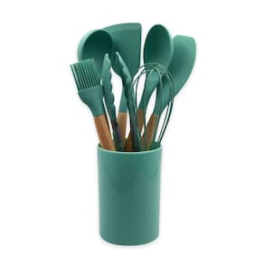 Conjunto de Utensilios Silicone 8 peças - Verde Escuro Esse é o conjunto ideal para quem deseja manter a cozinha ainda mais equipada. Complemente seus utensilios e esteja pronto para realizar as mais diversas receitas utilizando esse kit de ótima qualidade, resistente e que garante maior durabilidade. Feito totalmente de silicone com cabo de madeira, os esses itens irão te auxiliar nos mais variados preparos e proporcionar maior proteção nas suas panelas com revestimento, não permitindo arranhar e danificar sua camada de proteção. Além de serem mais seguros, diminuindo as chances de acidentes com queimaduras, mesmo com altas temperaturas. - Atende a suas necessidades domésticas com mais praticidade. - Leve, garantindo melhor manuseio. - Fácil de lavar. - Não absorve aroma ou gosto. O conjunto é composto por: - 01 Concha de silicone. - 01 Colher de silicone. - 01 Espátula de silicone. - 01 Espátula de confeoteiro de silicone. - 01 Pegador de silicone. - 01 Fue de silicone. - 01 Pincel de silicone. - Copo de silicone. *** TODOS POSSUEM CABO DE MADEIRA. - 01 COPO SUPORTE DE SILICONE. **** ESPECIFICAÇÕES: Material: Silicone com cabos de madeira. Dimensões: - 01 Concha de silicone: Alt: 31cm X Larg: 7cm. - 01 Colher de silicone: Alt: 31cm X Larg: 6cm. - 01 Espátula de silicone: Alt: 31cm X Larg: 8cm. - 01 Espátula de confeteiro de silicone: Alt: 31cm X Larg: 5cm. - 01 Pegador de silicone: Alt 23cm X Larg: 4cm. - 01 Fue de silicone: Alt: 25cm X 7cm. - 01 Pincel de silicone: Alt: 26cm X 4cm. Peso: 590g. aprox. Cor: Verde Escuro. CONTÉM: 01 CONJUNTO DE UTENSILIOS 8 PEÇAS - VERDE ESCURO