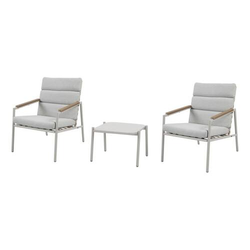 Transforme sua varanda em um espaco de lazer elegante e confortavel com o Conjunto de Varanda de Metal Rio 3 Pecas. Este conjunto e composto por uma mesa e duas cadeiras, todas feitas de madeira ecologica Polywood, um material resistente e duravel que imita a aparencia da madeira natural. A cor taupe claro do conjunto adiciona um toque de sofisticacao, criando um ambiente acolhedor. Alem disso, o conjunto possui apoio de braco para garantir um conforto extra durante seus momentos de relaxamento.