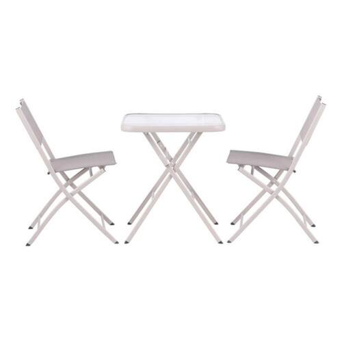 Modelo: Madrid Marca: Just Home Collection Peso: 12.9 kg Dimensoes da Mesa: 60x60x70 cm Dimensoes das Cadeiras: 46x56x82 cm Material: Ferro Cor: Taupe marrom acinzentado Apoyabrazos: Nao Plegavel: Sim Rodas: Nao Dificuldade de Montagem: Baixa Uso: Domestico Requer Montagem: Nao Estilo Decorativo: Boho Chic Descricao: