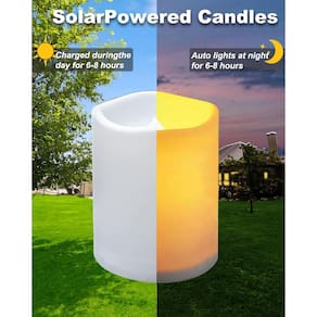 O sol recarrega as baterias durante todo o dia para que o sensor integrado possa ligar a luz automaticamente ao anoitecer, oferecendo a você um brilho quente durante a noite. Por que nos escolher? Decoração multifuncional: Coloque em sua mesa ao ar livre, jardim, casamento, festa, decorações de festivais. para a decoração perfeita para a noite! Design solar: Interruptor de uma chave, sem operações redundantes, sem necessidade de substituir a bateria À prova de intempéries: As velas são projetadas para uso na chuva, mas não devem ser totalmente submersas ou usadas em condições climáticas extremas. Seguro para todos: Seguras para crianças e animais de estimação, as velas artificiais sem fumaça adicionam ambiente a qualquer jardim, quintal ou evento externo. Portátil: A vela solar sem chama que pode ser movida de forma independente pode ser colocada em qualquer lugar e pode lidar temporariamente com a situação de falha de energia e sem fonte de luz Especificações: Tipo de vela: Pilar de borda derretida Acabamento: branco, fosco Material: Resina (Plástico) Fonte de luz: LED Cor do LED: branco quente Temperatura do LED: 2700 Kelvin Fonte de alimentação: painel solar e bateria recarregável Tipo de bateria: AA 1,2 V / 600 mAh Comprimento da carga: 8 horas Pilhas incluídas: Sim Dimensões: 8 cm de diâmetro x 10 cm de altura Opções de interruptor: ON/OFF Resistente à água: Sim Classificação: IP34 Controle remoto: não é necessário controle remoto Uso pretendido: decoração de casa / uso interno e externo / decoração de lanterna Conteúdo da embalagem: Vela de pilar sem chama de 5 x 8,3 cm x 10 cm 2 pilhas AA recarregáveis (1 por pilar). 1 manual do utilizador (idioma português não garantido) - Alimentado por energia solar: ilumine sua noite com velas do crepúsculo ao amanhecer. Estes pilares clássicos acendem automaticamente ao anoitecer e permanecem acesos por mais de 10 horas. [Pilhas recarregáveis incluídas] - À prova de clima: classificação IP34 para uso externo em todas as condições climáticas. Exiba na mesa do pátio, degraus da varanda ou parapeito da janela sem se preocupar com chuva. - SEGURANÇA: Conjunto de velas sem chama, você pode ter noites perfeitas no ambiente com tranquilidade; não se preocupe com riscos de incêndio, fumaça, cera de gotejamento ou toalha de mesa manchada. Estas velas brancas sem chama para crianças são uma ótima escolha para qualquer família com crianças ou animais de estimação que desejam garantir que seus pequenos fiquem seguros e salvos - Brilho branco quente: cada vela externa contém um LED branco cintilante e quente para um efeito de iluminação realista. | Temperatura da cor: 2700 K. Dimensões: 3x4, 3x5, 3x6. - Presentes: é elegante e prático ao mesmo tempo, ideal para ornamento no jardim, casamento, ao ar livre, hotel e um presente especial para mãe, pai, esposa, amigos e qualquer pessoa que você ama. O que você vê é o que você recebe.