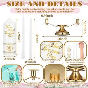 Características: O castiçal de vidro adota superfície clara, simples e elegante, suave e confortável ao toque. E a cor clara pode combinar bem com a maioria dos estilos de casa, não é fácil sair estilos para que você possa usá-lo por um longo tempo. Estas velas de casamento de cerimônia podem se encaixar bem nos castiçais, para criar uma atmosfera acolhedora e aconchegante para sua casa ou festa. Especificações: Material: Velas: cera Cor: Velas: branco Tamanho das velas: aprox. 2,2 x 25 cm e 7 x 20 cm. A embalagem inclui: 3 peças de velas unitárias 3 peças de castiçais Observações: Medição manual, considere pequenos erros no tamanho. A cor pode existir uma ligeira diferença devido a diferentes ecrãs. Produtos de vidro, tenha cuidado ao usar. - O que você receberá: o pacote inclui 1 conjunto/3 peças de velas unitárias e 3 peças de castiçais para velas de pilar, que combinam bem para decorar a mesa e a festa com uma atmosfera romântica; Eles são bem embalados para garantir uma chegada segura - Informações de tamanho: as velas de casamento de cerimônia incluem 2 estilos diferentes, um tem aproximadamente 0,87 x 9,84 polegadas/2,2 x 25 cm e o outro tem cerca de 2,76 x 7,87 polegadas/7 x 20 cm, ajustando-se bem aos castiçais correspondentes - Decoração elegante: o conjunto de velas unity com suporte é requintadamente projetado para cerimônia de casamento e decoração da casa, elegante e elegante, será uma maneira ideal de decorar sua sala de estar, quarto, banheiro, sala de jantar como peça central de mesa, adequado para celebrações, aniversários, inauguração de casa e assim por diante - Material confiável: as velas para casamento são feitas de material de cera, confiável e seguro de usar, e a decoração de renda é colada manualmente com cola, pode haver transbordamento de cola, mas isso não afeta a aparência, observe gentilmente; Os castiçais são feitos de vidro, grossos e resistentes, podem ser aplicados por um longo tempo - Bons presentes: as velas e suportes unitários são práticos e decorativos, serão um presente requintado para seus amigos, familiares, namorada, colegas e outras pessoas que você ama, adequado para casamentos, aniversários, decoração de casa, jantares, festivais, eventos formais, casamentos, para adicionar brilho a essas ocasiões