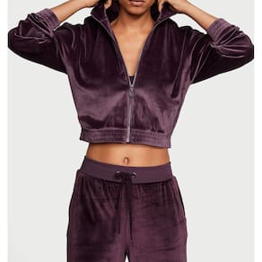 O veludo encontra a textura canelada aconchegante em um conjunto confortável e fofo. Entre na vibe do início dos anos 2000 combinando a calça jogger e o cassaco.