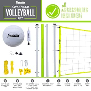 Conjunto de voleibol Franklin Sports - Conjunto de redes de voleibol de praia e quintal - Rede portátil de voleibol e conjunto de bolas com bastões e estacas no solo - Avançado