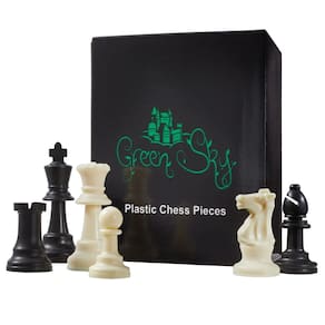 Apresentamos as peças de xadrez Green Sky Weighted Tournament, a adição perfeita para o seu jogo de xadrez. Estas peças de xadrez de plástico são trabalhadas com atenção aos detalhes, garantindo que cada peça seja resistente e pesada para estabilidade durante o jogo. O conjunto inclui 32 peças, cada uma com uma altura de 7,5 cm ou 3 polegadas, e é projetado para uso com um tabuleiro de xadrez de tamanho padrão. O design elegante e atemporal das peças adiciona um toque de sofisticação a qualquer sala de jogos ou escritório. Seja você um iniciante ou um jogador experiente, essas peças de xadrez proporcionarão horas de diversão e entretenimento para todos os níveis de habilidade. Peça suas peças de xadrez Green Sky Weighted Tournament hoje e eleve seu jogo de xadrez para o próximo nível! - 32 peças de xadrez – Perfeito para jogos de xadrez, xadrez de viagem, conjuntos de xadrez e todos os tamanhos e tipos de jogos de tabuleiro de xadrez. Jogadores de xadrez estão constantemente perdendo peças, portanto, esta coleção de peças de jogos de xadrez é perfeita para escolher ou comprar se você estiver usando um tabuleiro de xadrez não tradicional como em móveis ou quadrados desenhados - 16 peças pretas e 16 peças brancas de xadrez, perfeitas se você é apenas um jogador de xadrez iniciante ou um experiente tipo Beth Harmon ou Bobby Fischer. O tabuleiro de xadrez de madeira ou o tabuleiro de xadrez de plástico não estão incluídos. Esta oferta é para peças de substituição - Torneio de xadrez ou xadrez de avião ou xadrez simples de prisão. Indo para a cadeia; aprenda a brincar, não há mais nada a fazer! - Lindas peças de xadrez pesadas vêm como peças de xadrez de plástico ou de madeira de sua escolha. Nossa madeira é finamente lixada, sem lascas aqui. Acabamento de qualidade. O rei tem 7,5 cm de altura, o que o torna perfeito para viagens ou torneios - Perfeito para todos os tipos de conjuntos de xadrez ou qualquer jogo de tabuleiro de xadrez, exceto um conjunto de xadrez magnético, pois não há ímãs neles! - Nossas peças de xadrez de madeira são perfeitas para um conjunto de xadrez de madeira ou qualquer conjunto de xadrez de madeira, enquanto nossas peças de xadrez de plástico são perfeitas para tabuleiros de xadrez de papelão ou papel ou um tabuleiro de xadrez de plástico