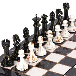 Experimente o jogo de xadrez atemporal com luxo com este conjunto de xadrez grande de 38 cm, projetado para adultos e crianças. Com peças de xadrez pesadas feitas de uma combinação de liga de zinco de alta qualidade e acrílico galvanizado, cada peça apresenta uma sensação premium, garantindo uma experiência de jogo estável e satisfatória. O conjunto inclui um rei de 8,9 cm, juntamente com homens de xadrez meticulosamente projetados que não apenas elevam sua jogabilidade, mas também adicionam um toque sofisticado à sua coleção. O tabuleiro de xadrez dobrável de madeira marmorizada é tão funcional quanto bonito, oferecendo um design compacto e portátil que facilita levar o jogo em qualquer lugar. Se você estiver viajando, visitando amigos ou simplesmente armazenando em casa, a estrutura dobrável durável da prancha garante conveniência sem comprometer a elegância. No interior, os compartimentos fixos moldados personalizados seguram cada peça de xadrez, evitando danos e mantendo tudo organizado para configuração e jogo rápidos. Este conjunto versátil é perfeito para reuniões de família, brincadeiras casuais ou até mesmo partidas competitivas. Ideal para todas as idades, este elegante conjunto de xadrez oferece não apenas um passatempo divertido, mas também uma ferramenta para desenvolver o pensamento estratégico e habilidades cognitivas. Seja você um jogador experiente ou apenas aprendendo o jogo, é um presente perfeito para aniversários, feriados e ocasiões especiais como Natal, Hanukkah ou Ano Novo. Entregue-se à elegância e sofisticação deste conjunto de xadrez clássico, projetado para ser uma peça central em sua casa e uma parte preciosa de sua coleção de jogos. - Peças de xadrez de luxo de liga de zinco e acrílico: trabalhadas com um núcleo interno de liga de zinco e um exterior de acrílico galvanizado, essas peças oferecem uma sensação e aparência elegantes, muito superiores ao plástico tradicional. O design pesado, juntamente com o King de 8,9 cm, garante estabilidade e uma experiência de jogo premium, complementada por uma base de couro suave para proteger o tabuleiro. - Conjunto de xadrez dobrável portátil: Projetado com a conveniência em mente, o tabuleiro de xadrez de madeira marmorizado é dobrável para facilitar o transporte. Seu tamanho compacto se encaixa perfeitamente em qualquer bolsa ou mala, tornando-o o companheiro de viagem perfeito para os amantes de xadrez em movimento, seja para crianças ou adultos. - Armazenamento seguro com compartimentos individuais: cada peça de xadrez é armazenada com segurança em compartimentos fixos moldados sob medida dentro do tabuleiro dobrável. Este recurso de proteção mantém as peças organizadas, livres de danos e prontas para brincar a qualquer momento. - Conjunto de xadrez elegante e durável: com peças de xadrez cromadas e metálicas com um brilho duradouro e um tabuleiro de madeira marrom lindamente marmorizado, este conjunto de xadrez é prático e visualmente deslumbrante. É uma peça central requintada para qualquer casa, combinando funcionalidade com decoração elegante. - Presente perfeito para todas as idades: este conjunto de xadrez premium é um presente ideal para entusiastas de xadrez de todas as idades. Perfeito para aniversários, feriados e ocasiões especiais, ajuda a melhorar o pensamento estratégico e as habilidades cognitivas, proporcionando infinitas horas de entretenimento envolvente. Ideal para presentes de Natal, Hanukkah e Ano Novo.