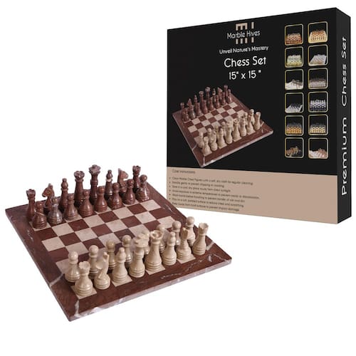 Apresentamos Marble Hives você um elegante conjunto de xadrez artesanal Marina & Virona com mármore de qualidade premium conhecido por seu design incomparável e durabilidade. Este luxuoso conjunto de xadrez de pedra apresenta um tabuleiro de xadrez moderno e 32 peças de xadrez de mármore apenas adicionando um toque de sofisticação a qualquer canto da sua casa. As peças de xadrez de mármore real incluem King, Queen, Bispo, Cavaleiro, Livro e Peões, cuidadosamente trabalhadas a partir de mármore real de alta qualidade, garantindo longevidade e grandeza. Tanto o tabuleiro de xadrez quanto as peças de xadrez são polidas à mão por artesãos habilidosos. O tabuleiro de xadrez mede 38 x 38 cm, proporcionando espaço suficiente para jogos estratégicos. Cada peça pesa 42,5 a 56,7 g, melhorando a experiência tátil durante o jogo. Este conjunto de xadrez versátil aprimorará suas habilidades, adequado para todas as idades, tornando-o perfeito para jogadores iniciantes e experientes também. - Mármore de tabuleiro de xadrez: 38 cm, mármore de peças de xadrez: King: 8,9 cm, Queen: 7,6 cm, Bispo: 7 cm, Cavaleiro: 6,3 cm, Torre: 6,3 cm, Peões: 5,7 cm, Tabuleiro: 38 x 38 cm. - Feito à mão: este conjunto de xadrez feito à mão Marina & Virona é esculpido com ônix de mármore 100% legal de alta qualidade, esculpido nas pedras mais profundas. Totalmente polido à mão de tabuleiro a figuras de xadrez, por artesãos habilidosos. - O que inclui: 1 tabuleiro de xadrez de mármore e 32 peças de xadrez de mármore, 2 reis, 2 rainhas, 16 peões e 4 cavaleiros, 4 bispos, 4 torres. - Multifuncional: este conjunto de mármore de xadrez pode ser ambos, perfeito para decoração de casa e um presente atencioso para os amantes de xadrez ao seu redor. - Conjuntos de xadrez de mármore para adultos: nossos conjuntos de xadrez de mármore Marina & Virona de 38 cm certamente aumentam a força cerebral e o pensamento único. Seja você iniciante ou experiente, você pode praticar livremente neste conjunto de xadrez.