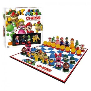 Mario e Bowser estão se enfrentando mais uma vez; desta vez no clássico jogo de xadrez. Escolha sua equipe e assuma o controle de 32 peças pintadas à mão, incluindo: Mario, Luigi, Bowser e muito mais.