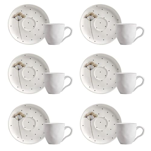 Conjunto de Xícara de Cafezinho com Pires 06 Peças Bio Floralis Porto Brasil - Incluso