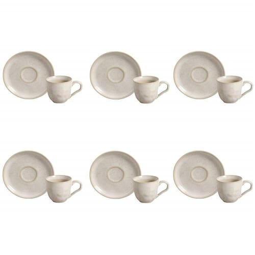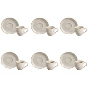 Conjunto de Xícara de Cafezinho com Pires 06 Peças Bio Latte Porto BrasilO Stoneware, assim como a faiança feldspática e porcelana, é um material cerâmico. O Stoneware Porto Brasil é um material inovador e sustentável, onde a combinação das melhores matérias primas naturais, unido a um processo único de queima e acabamento manual, entregam um produto com características superiores em termos de qualidade e resistência, estando em conformidade com as principais normas mundiais. Além disso, conseguimos proporcionar peças exclusivas, onde alterações de formas, relevos e variações de cores são efeitos característicos dos produtos, evidenciando assim sua originalidade e autenticidade.