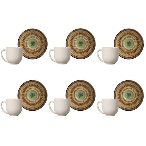 Conjunto de Xícara de Cafezinho com Pires 06 Peças Coup Oliva Porto Brasil - Incluso