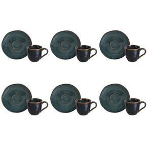 Conjunto de Xícara de Cafezinho com Pires 06 Peças Orgânico Oceano Porto Brasil - Incluso