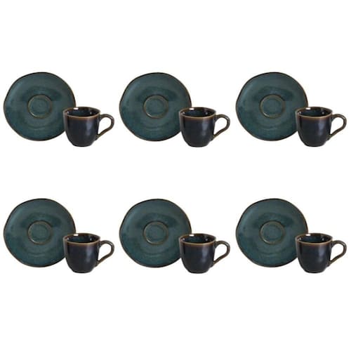 Conjunto de Xícara de Cafezinho com Pires 06 Peças Orgânico Oceano Porto BrasilO Stoneware, assim como a faiança feldspática e porcelana, é um material cerâmico. O Stoneware Porto Brasil é um material inovador e sustentável, onde a combinação das melhores matérias primas naturais, unido a um processo único de queima e acabamento manual, entregam um produto com características superiores em termos de qualidade e resistência, estando em conformidade com as principais normas mundiais. Além disso, conseguimos proporcionar peças exclusivas, onde alterações de formas, relevos e variações de cores são efeitos característicos dos produtos, evidenciando assim sua originalidade e autenticidade.
