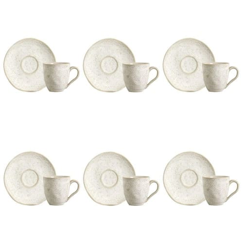 Conjunto de Xícara de Cafezinho com Pires 06 Peças Orgânico Vanilla Porto - Incluso