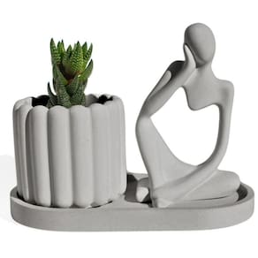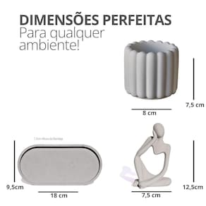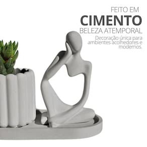 Com o Conjunto decorativo Estátua Pensadora, Vaso Tulipa e Bandeja Oval leve um toque de criatividade e charme ao seu ambiente com peças decorativas artesanais em Cimento. A Estátua Pensadora é ideal para mesas e prateleiras, o Vaso Tulipa combina delicadeza e modernidade em uma peça única. A Bandeja Oval complementa o conjunto com elegância.