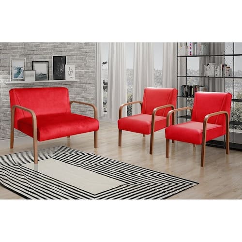 Conjunto Decorativo Anita Namoradeira + Poltronas Sala, Recepção Vermelho 100
