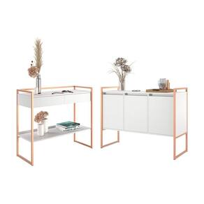 DESCRIÇÃO DO TAMANHO: Dimensões do Buffet: Altura: 87 cm Largura: 120 cm Profundidade 41 cmDimensões do Aparador: Altura: 87 cm Largura: 110 cm Profundidade 41 cm | MATERIAL PRINCIPAL: MDP | COR PREDOMINANTE: Branco | ESTADO DE ORIGEM: SP | CONTEÚDO DA EMBALAGEM: 1 Buffet E Aparador | MATERIAL PARA FILTRO: MDP | CORES DO PRODUTO (FILTRO DE CORES): Branco | INSTRUÇÕES/CUIDADOS: Limpar com pano macio e seco, não utilizar produtos abrasivos. | PRODUTO PRECISA DE MONTAGEM?: Sim, a montagem é simples mas sugerimos a contratação do nosso serviço de montagem (para os CEPs em que o serviço está disponível) ou de algum experiente de sua preferência | COMPRIMENTO DO PRODUTO (CM): 41 | COMPRIMENTO PRODUTO COM EMBALAGEM (CM): 123 | LARGURA PRODUTO COM EMBALAGEM (CM): 43 | ALTURA DO PRODUTO (CM): 87 | PESO PRODUTO COM EMBALAGEM (KG): 52 | LARGURA DO PRODUTO (CM): 120 | ALTURA DO PRODUTO COM EMBALAGEM (CM): 25 | PESO DO PRODUTO (KG): 51,2 | MODELO: Conjunto Buffet e Aparador Industrial Branco Cobre | MARCA: CASAH