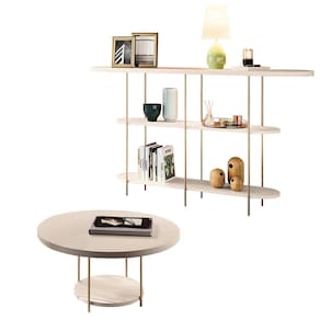 O Aparador Walker possui um tampo usinado com vidro embutido de 6mm, conferindo um visual sofisticado e moderno. Suas prateleiras amplas oferecem espaço ideal para acomodar objetos decorativos, livros e itens diversos. Os pés são fabricados em aço maciço 3/8, com acabamento dourado, garantindo maior estabilidade e resistência. Além disso, sua versatilidade permite o uso como divisor de ambientes, agregando praticidade e estilo ao espaço. A Mesa de Centro Walker com Tampo MDF traz um design contemporâneo que combina a robustez do MDF de 25mm com a leveza dos pés em aço maciço 3/8, também com acabamento dourado. Este conjunto permite composições , criando um ambiente acolhedor e sofisticado.