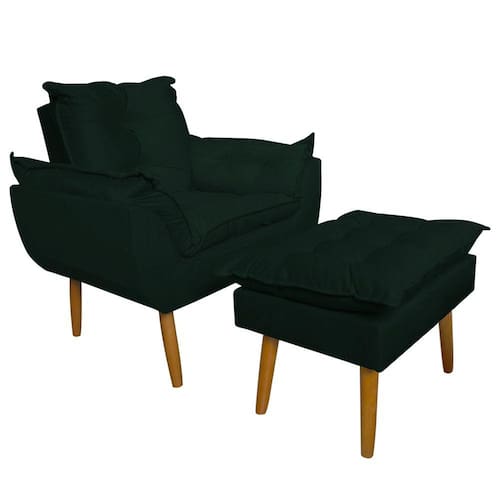 Conjunto Decorativo Poltrona com Puff Opala Suede Verde - Montanaris Decor