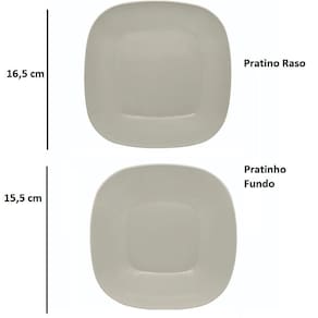 O conjunto é composto por um copo com capacidade de 320 ml, um copo com canudo de 700 ml, uma garrafa com alça de 500 ml, um pratinho raso, um pratinho fundo e um conjunto de talheres com colher, faca e garfo. Cada conjunto contém uma unidade de cada item mencionado.
