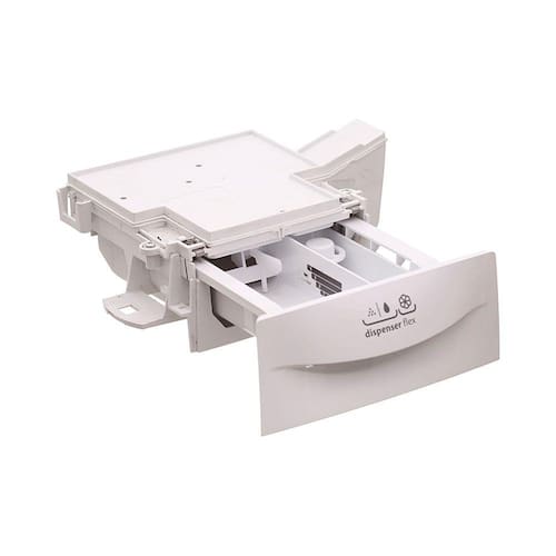 O Conjunto Dispenser para Máquina de Lavar para o armazenamento de sabão em sua lavadora de Roupas. Ele auxilia na medida correta e necessária de abastecimento do produto para cada ciclo, diluindo-o automaticamente durante as lavagens, assim agilizando o processo de cuidado com suas roupas. O conjunto contém: 01 Suporte Plástico para Gaveta e 01 Gaveta Dispenser.