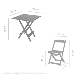 Conjunto Dobrável 70 X 70 Com 4 Cadeiras Madeira Maciça Mista CONJUNTO DOBRÁVEL MESA 70 X 70 COM 4 CADEIRAS EM MADEIRA MACIÇANossos produtos são fabricados com madeira maciça de lei, o que garante mais durabilidade e resistência, acabamento com verniz especial, além de todo cuidado, carinho e amor no manuseio do móvel durante todo o processo de produção. Essa é para você que ama reunir a família para aquele almoço top de domingo, ou para você que sempre reúne os amigos em casa para um churrasquinho, nossos conjuntos de mesas e cadeiras tornam cada momento desses ainda mais especiais.Produzido 100% com madeira maciça e envernizada com produtos de qualidade, com assentos confortáveis e variedade de lugares para as cadeiras e o tamanho amplo da mesa, qualquer momento se torna inesquecível com esse item que além de funcional deixa qualquer ambiente ainda mais charmoso!!! FICHA TÉCNICA DO PRODUTO:Características TécnicasModelo: Dobrável Mesa:Altura: 75 cm;Largura: 70 cm;comprimento: 70 cm; Cadeira:Altura: 77cm;Largura: 39 cm;Altura do Assento: 45 cm Informações Adicionais:Garantia: 90 dias contra defeitos de fabricaçãoAcompanha 1 mesa e 4 cadeiras Obs. A cor pode variar da foto conforme a tonalidade da madeira e iluminação., certificando que o produto passará por portas, escadas ou elevadores. !! Marca: Brasil Móveis